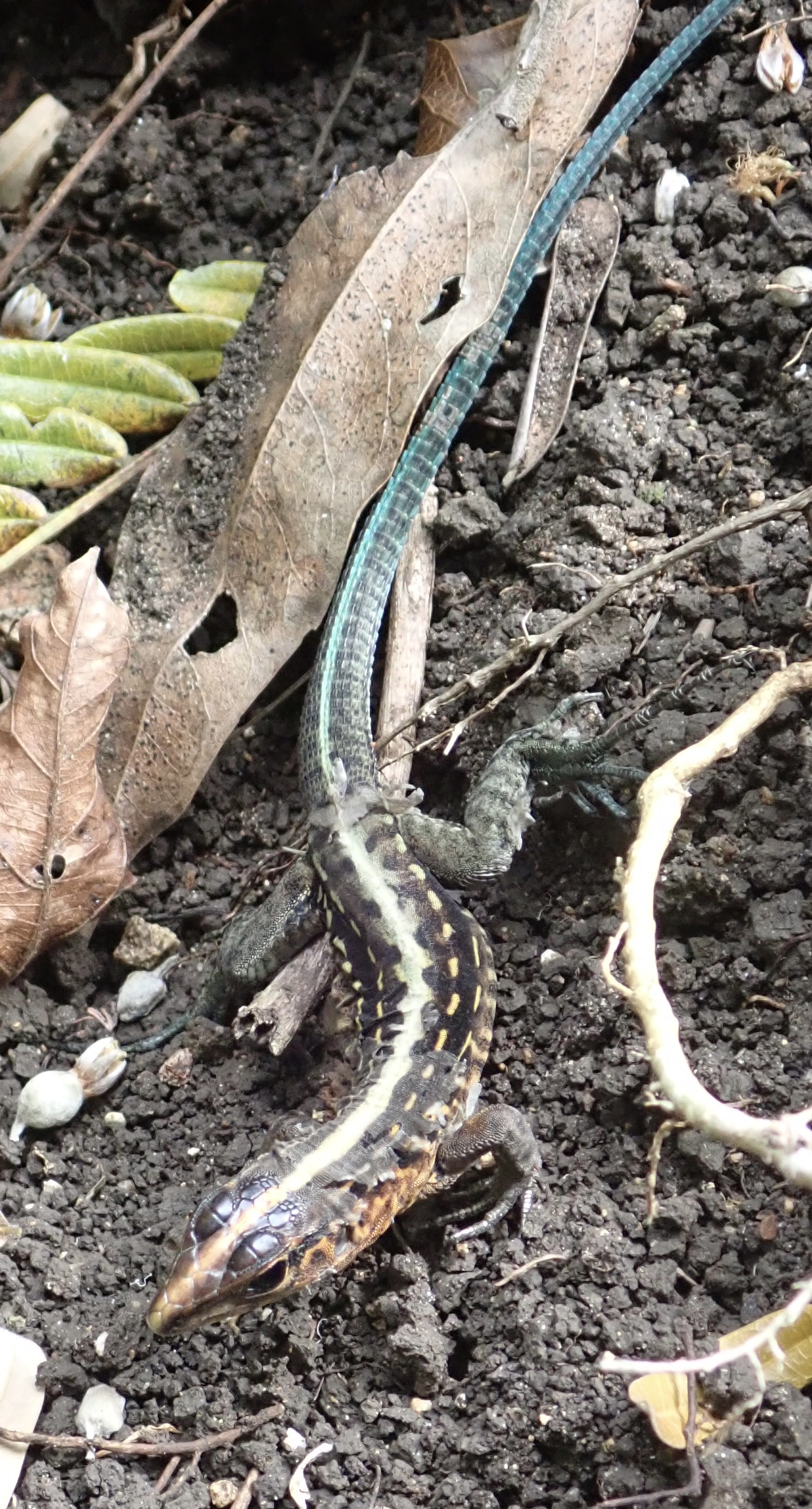 After breakfast we headed out to the cave after which the station is named. It’s out of bounds this year, so we just had a quick look at the flycatcher nest hanging over the opening before heading back out onto the Maya trail, in the opposite direction to yesterday. It was good to try and consolidate some of my plant knowledge but there was plenty more to see – a Morel mushroom, a Glass-wing butterfly, a Blue-tailed skink and another patch of Longhorn bog-orchids still in flower. Whilst photographing those, I spotted a Macaw feather on the ground – stunning colours. You notice so much more when you take the time to stop and really look.