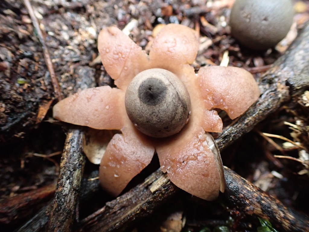 The rain has really brought on the fungal fruiting bodies and today we found Jelly ear, a coral fungus and Earthstars – a first for me. – on the Maya trail.