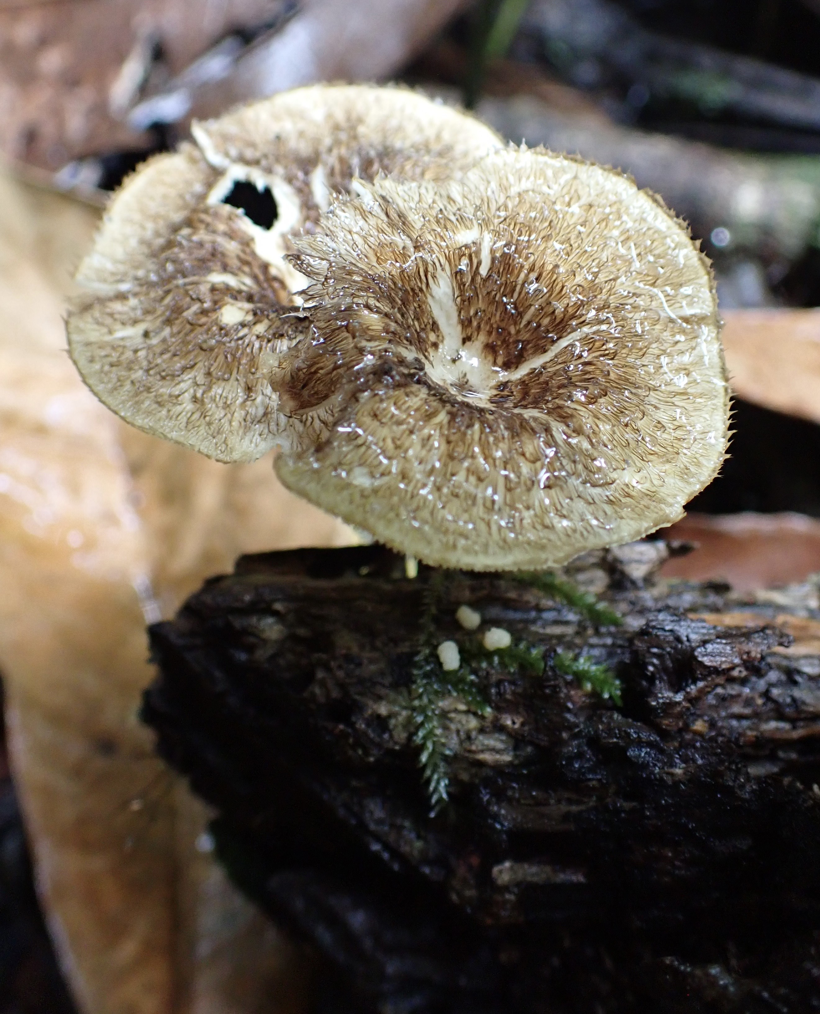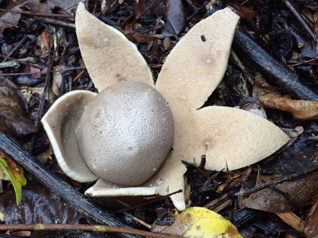 By the time I’d done my introduction and we’d visited the pond (where we found an inch long terrapin) the rain had started, and it persisted as we set off on the saffron trail. The weather meant we didn’t see quite as much as yesterday but also brought some new things to light; Shield bugs, including Stink bugs, a Tarantula Hawk wasp, Katydids, a much bigger species of Earthstar than we’d seen before and an orchid flowering high up in the canopy.