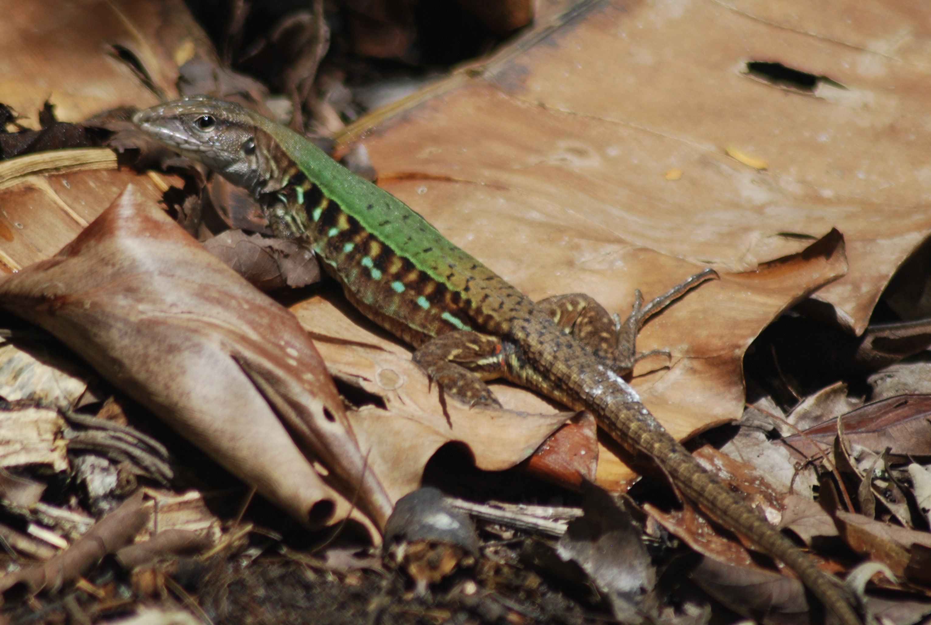 When the monkeys settled for a prolonged sleep we headed back to the centre, though I mooched around first and found a beautiful Rainbow ameiva lizard in the leaf litter on the way.