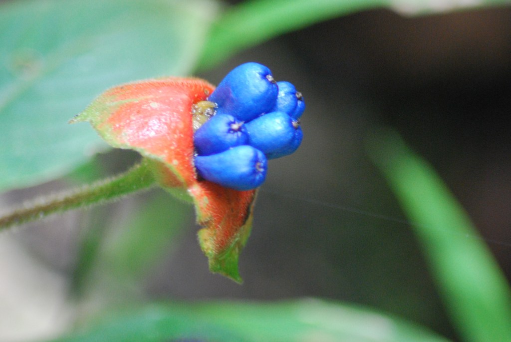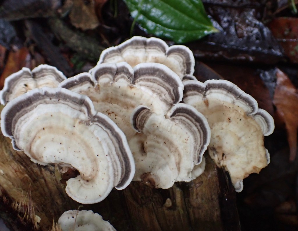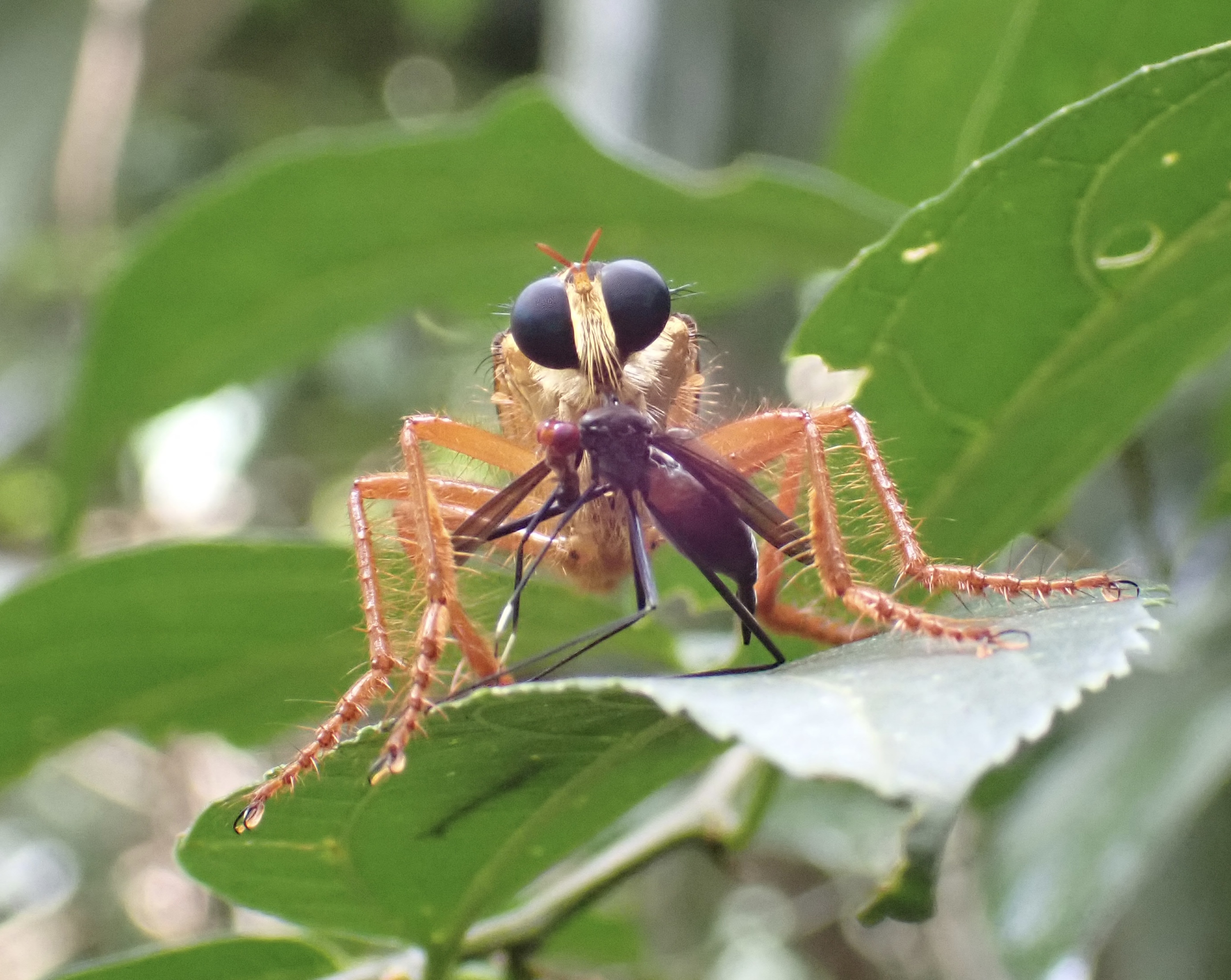 We saw lots of lovely butterflies along the roadside and interesting fungi in the woods, as well as insects including a robber fly with its prey. It was lovely just to be able to amble, with plenty of time to stop and look at whatever caught our interest. Some of the ‘Hot lips’ (Palicourea tormentosa) which was flowering when we arrived now has glorious, metallic blue fruits. We checked the camera trap on the Bird Tower trail where we saw an Ocelot last week; this week’s treat was a Margay – a slightly smaller wild cat with a longer, bushier tail.