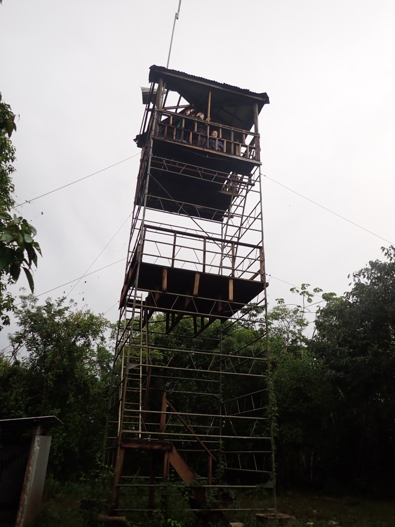 Alvin, who came with us, pointed out that the hill up to the tower is the remains of a Mayan temple, though the steps which form part of the route were probably put in by the British army when they built the bunkhouses at Las Cuevas. After breakfast, Jonathan and I walked the Maya trail and to the 50 hectare plot first, then around the saffron trail with Cam, touching base with all the groups of students working on their various projects. Lots of them were a bit worried about the amount of data they collected on the first day but were much happier with how things were going today.