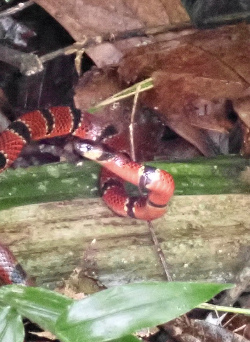 Thursday was our penultimate full day here, which seemed hard to believe. Eight of us went up to the Bird Tower early and, for the first time, I really got to see the spectacular view. The wildlife highlight though was, undoubtedly, seeing a Coral snake by the road on the way home.
