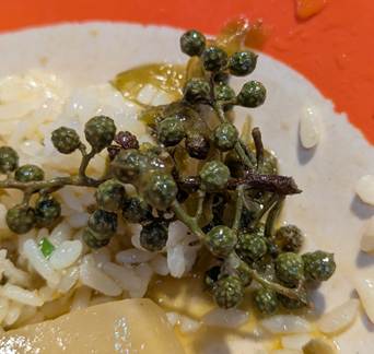 The numbness is brought about by a chemical known as hydroxy-alpha sanshool, which acts in a similar way to local anaesthetics by over-activating somatosensory neurons in the tongue, which normally detect stimuli such as gentle touch. Maybe I shouldn’t have been surprised that Sichuan peppers are in the Citrus family, as they have a lemony flavour profile in addition to their mouth-numbing properties.