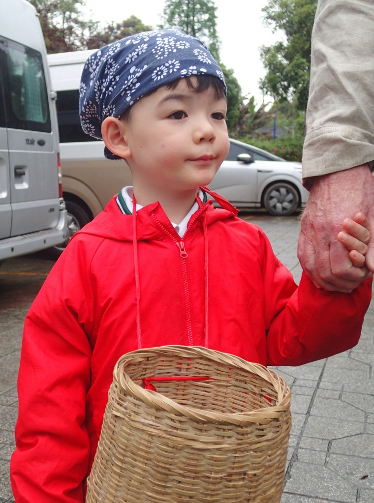 After lunch it was time to get dressed up for tea picking – the children were to wear kerchiefs on their heads and each carried a small basket for their leaves. Casper was not amused about the kerchief – his resigned expression when the teacher finally persuaded him to wear it was pretty much what his dad’s would have been in the circumstances, at that age.